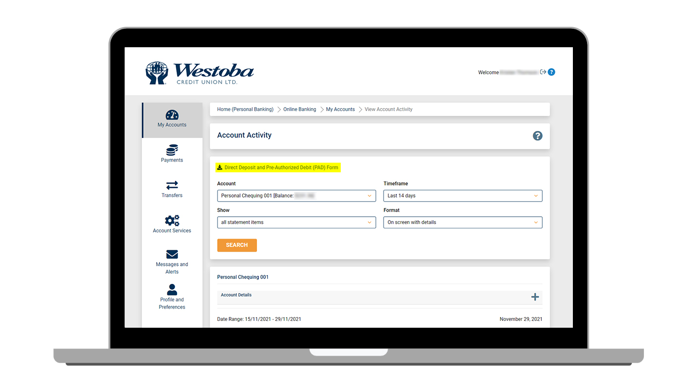 Download a Void Cheque for Direct Deposits through online banking